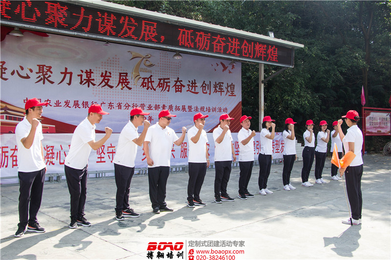 本次搏翱廣州拓展公司針對(duì)農(nóng)發(fā)行的培訓(xùn)主題“凝心聚力謀發(fā)展,砥礪奮進(jìn)創(chuàng)輝煌”,為農(nóng)發(fā)行廣東省分行營(yíng)業(yè)部的學(xué)員們定制了升旗儀式、開(kāi)營(yíng)破冰、挑戰(zhàn)120、百步穿楊、龍騰四海和全員戰(zhàn)鼓這幾個(gè)項(xiàng)目,雖然彼此之間也有競(jìng)爭(zhēng),但是營(yíng)業(yè)部的伙伴們彼此之間也在相互鼓勵(lì),共同出色地完成了各個(gè)項(xiàng)目。