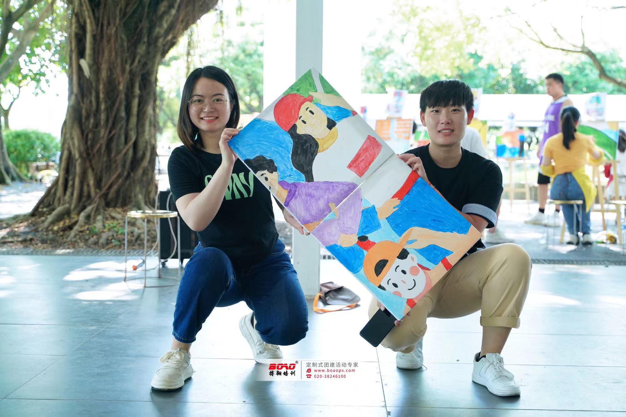 本次拓展的地點為花都寶桑園,搏翱廣州拓展培訓(xùn)公司根據(jù)客戶需求和在地的優(yōu)勢為學(xué)員設(shè)計了油畫大師 主題活動。活動通過在場所有團(tuán)員的分工協(xié)作,將一幅巨型圖畫合理分配給學(xué)員,每兩位學(xué)員負(fù)責(zé)繪制手上的一塊圖畫,在有限的時間內(nèi)完成畫作,每一塊圖畫都是完整的,可以作為單獨的作品展示,拼接在一起后,也可以作為一幅大型的作品展示。在前期制作過程中,團(tuán)隊成員的相互協(xié)作,增進(jìn)團(tuán)隊成員間的融合;目標(biāo)一致,通過團(tuán)隊學(xué)員間的互幫互助,過程中通過團(tuán)隊的努力完成一幅具有企業(yè)文化代表意義的油畫,激勵帶動全體青年職工積極投身到高速事業(yè)中。